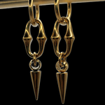 Sleek gold-tone spike earrings with a dark, gothic edge. The Gilded Fang Earrings blend minimalist design with weapon-inspired elegance for a bold yet refined statement.