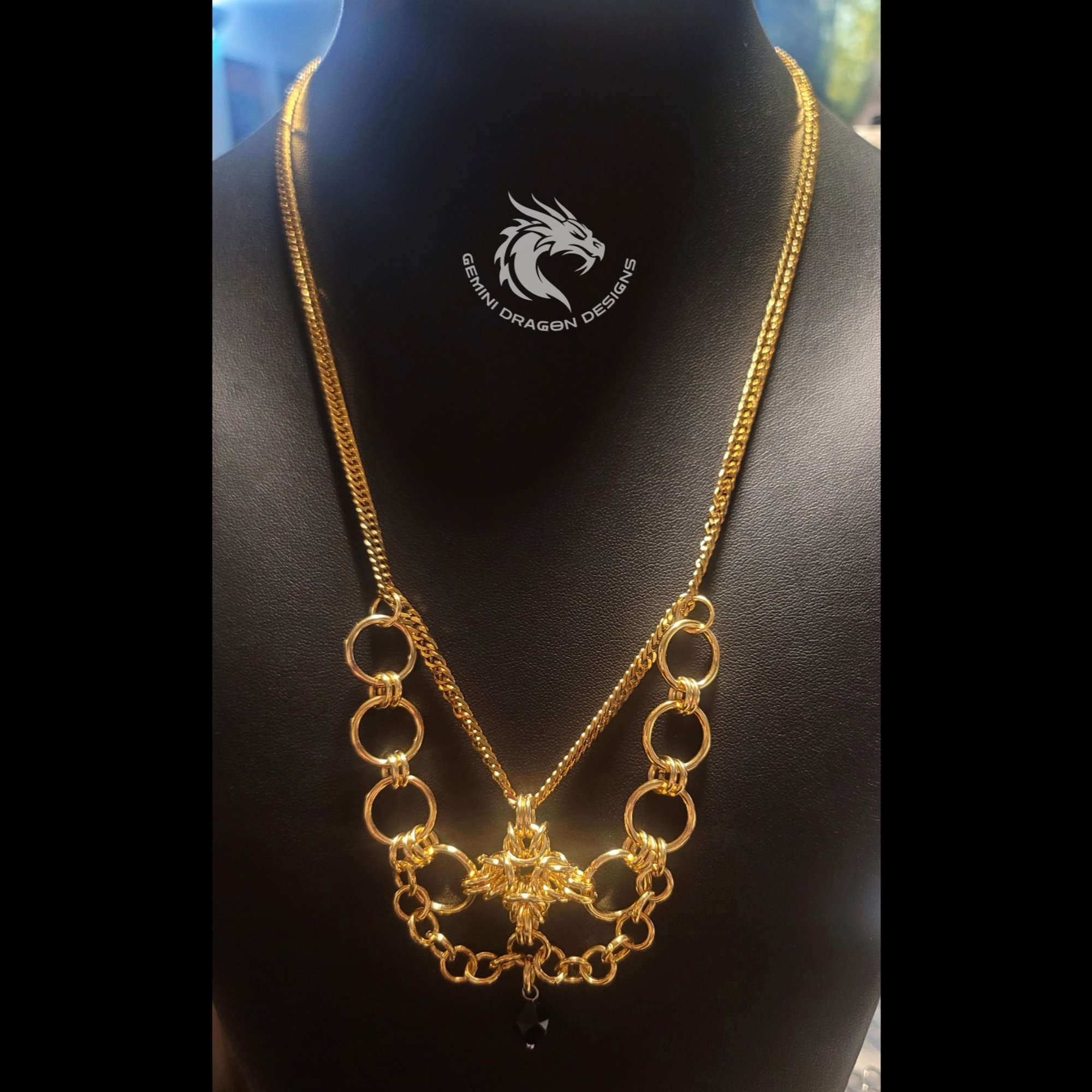 The popular Quadpoli necklace now comes in Gold! Made with 24k gold plated stainless steel rings and stainless steel chain and findings and an obsidian stone to protect against negative energy. Make a statement with Quadpoli!