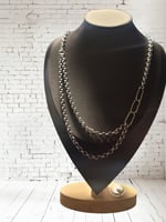 I was always a huge fan of drapey/multi strand necklaces and I designed this simple, yet statement making piece. It is made with stainless steel chain links and zinc alloy clasp.
