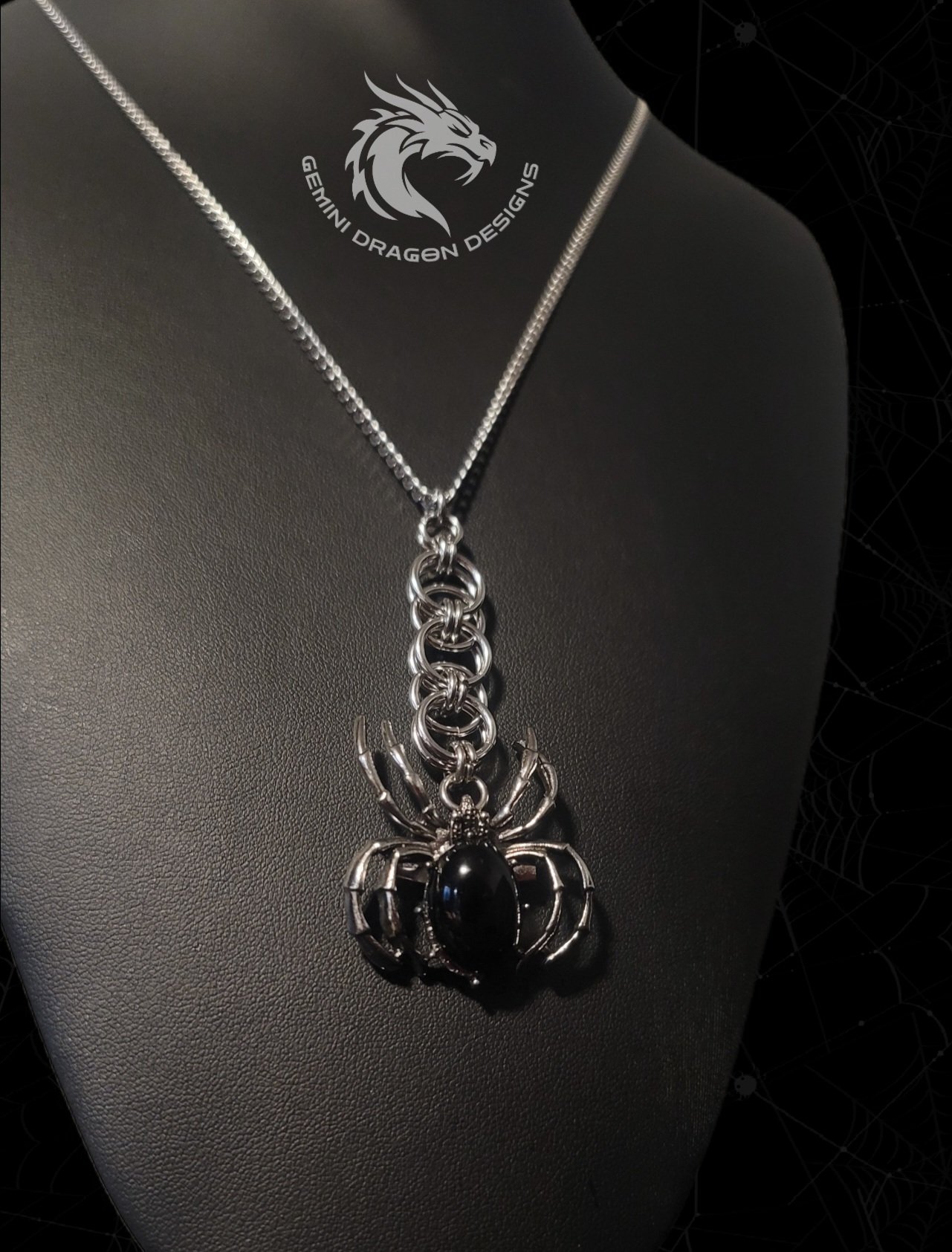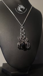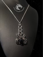 Handmade obsidian stone spider necklace featuring a dark gothic design inspired by shadow and protection. A bold statement piece for alternative, witchy and spider lovers!