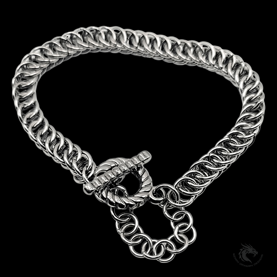 Persian style pattern chainmaille bracelet in all stainless steel materials. Please choose size in the selections. Standard size is 7 inch.